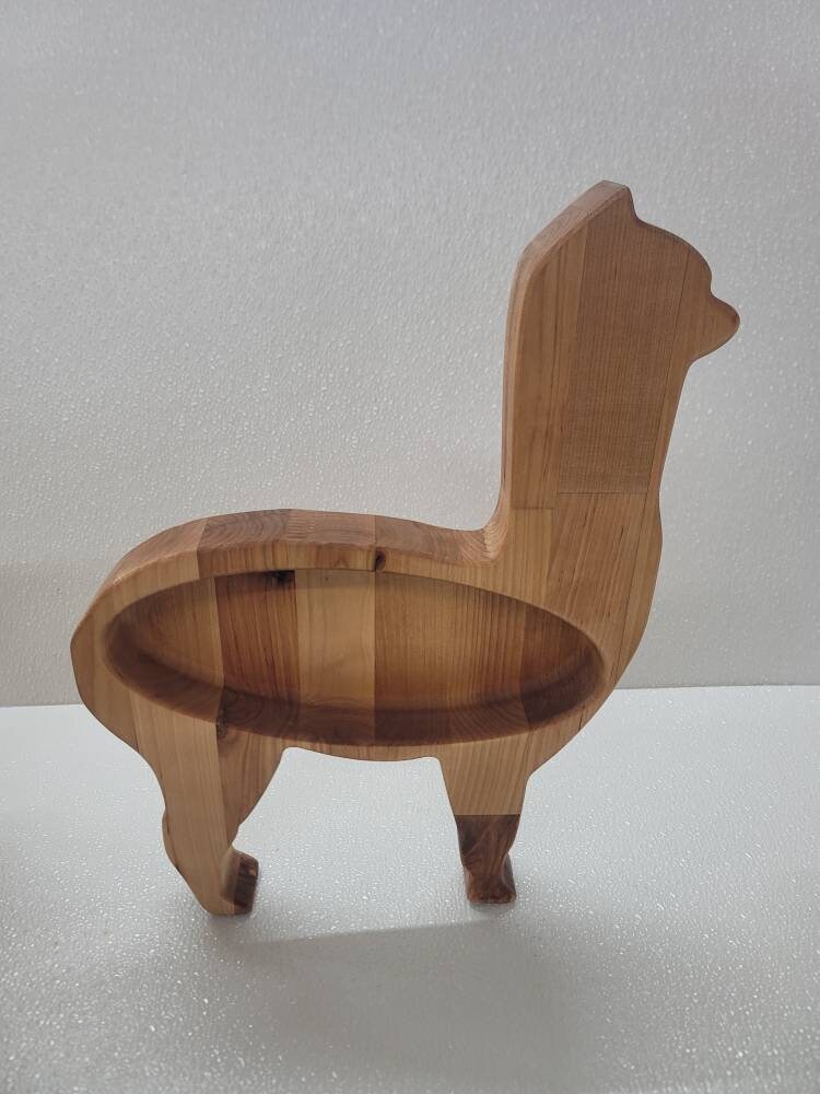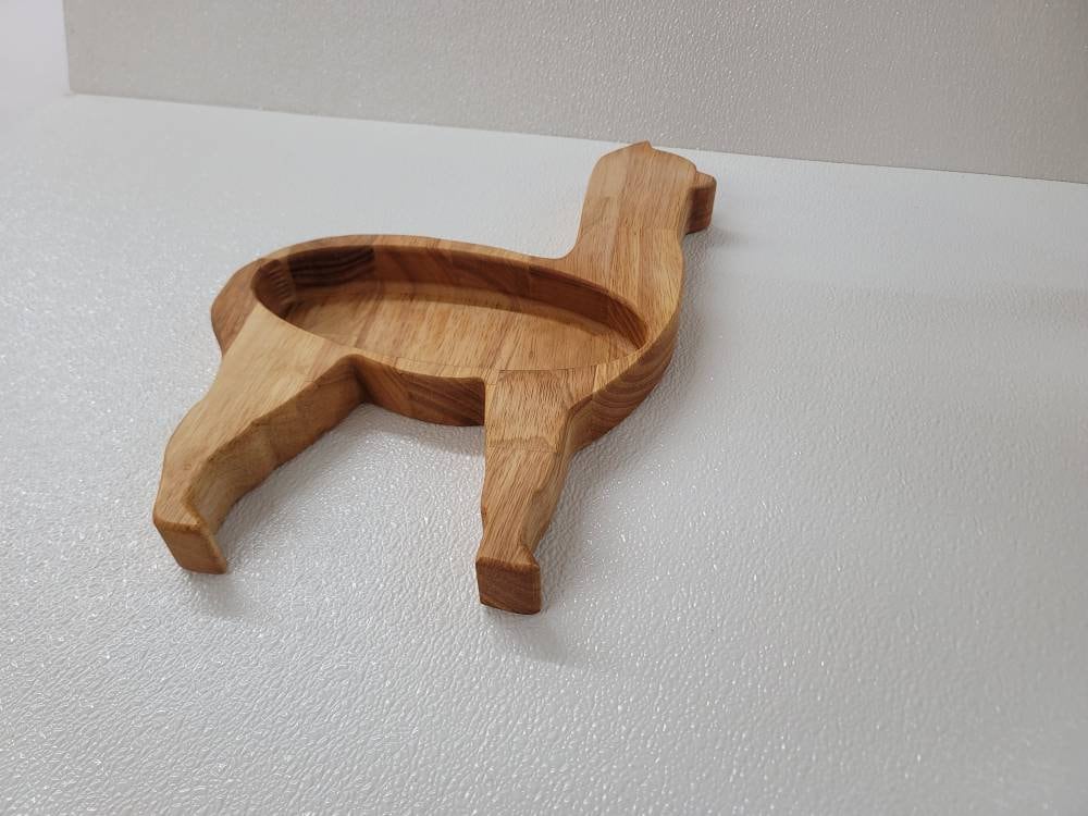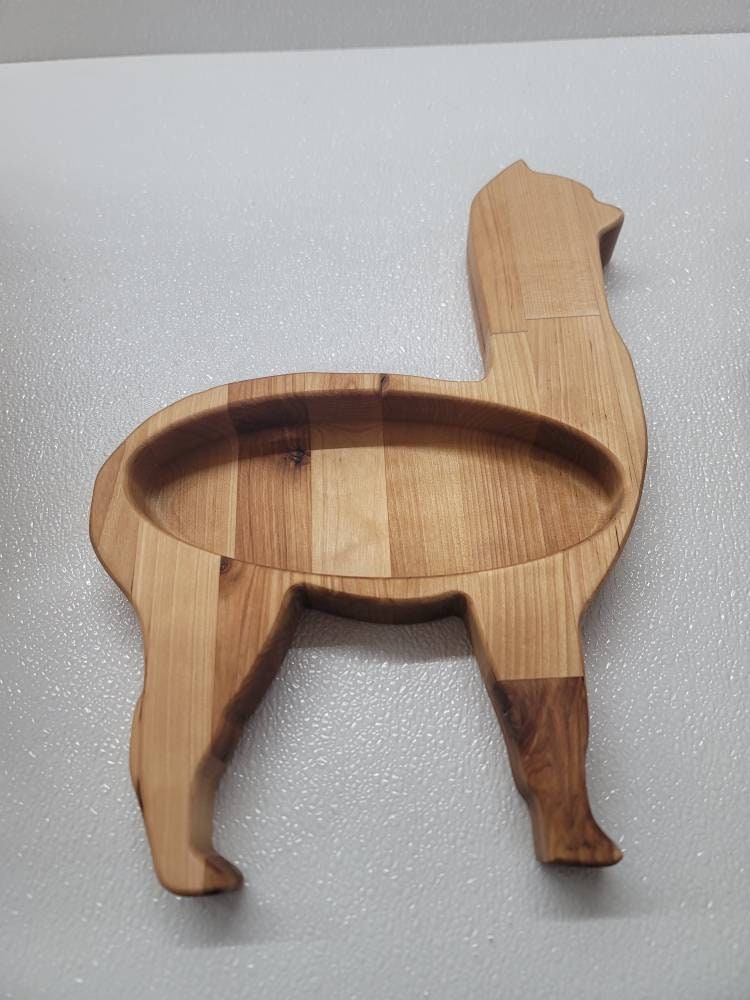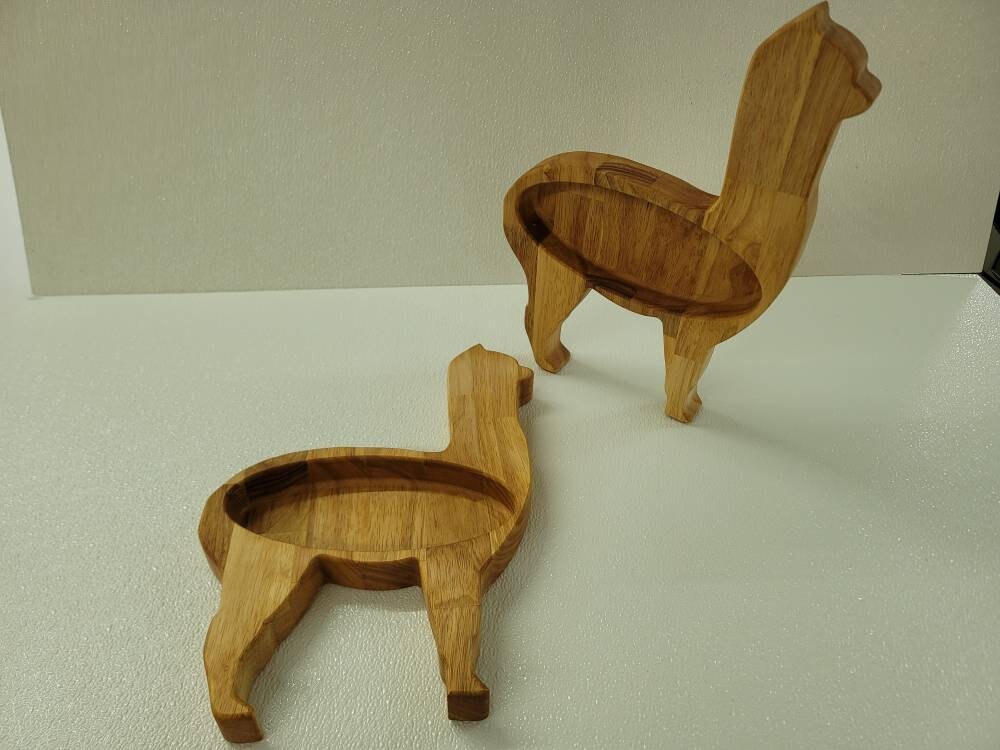 These hardwood snack dishes shaped like alpaca's are great for any occasion. Snacks, treats, catch-all, all kinds of uses. There are finished can I butcher block conditioner that is food safe for all of your snacks . These are solid hardwood.