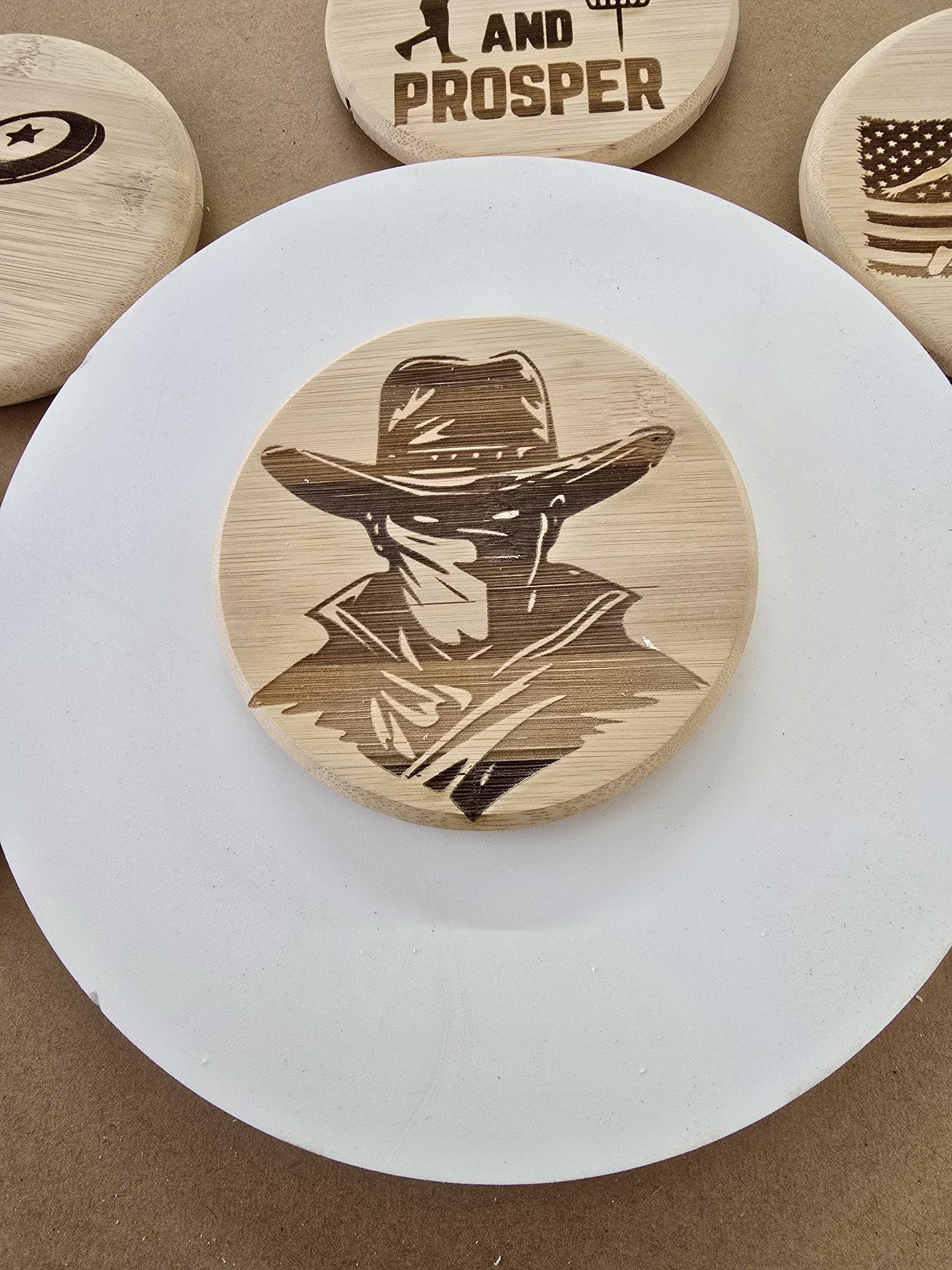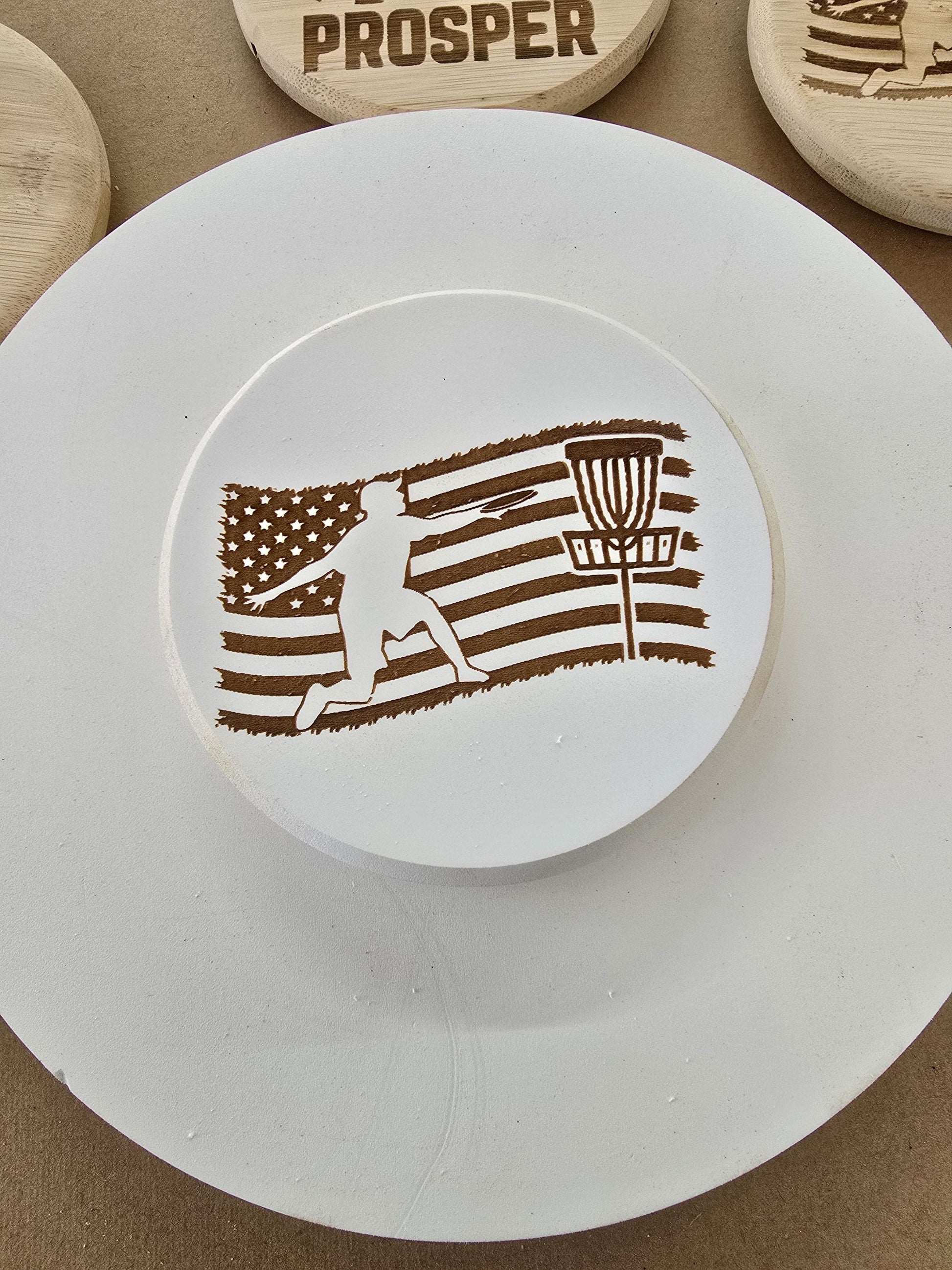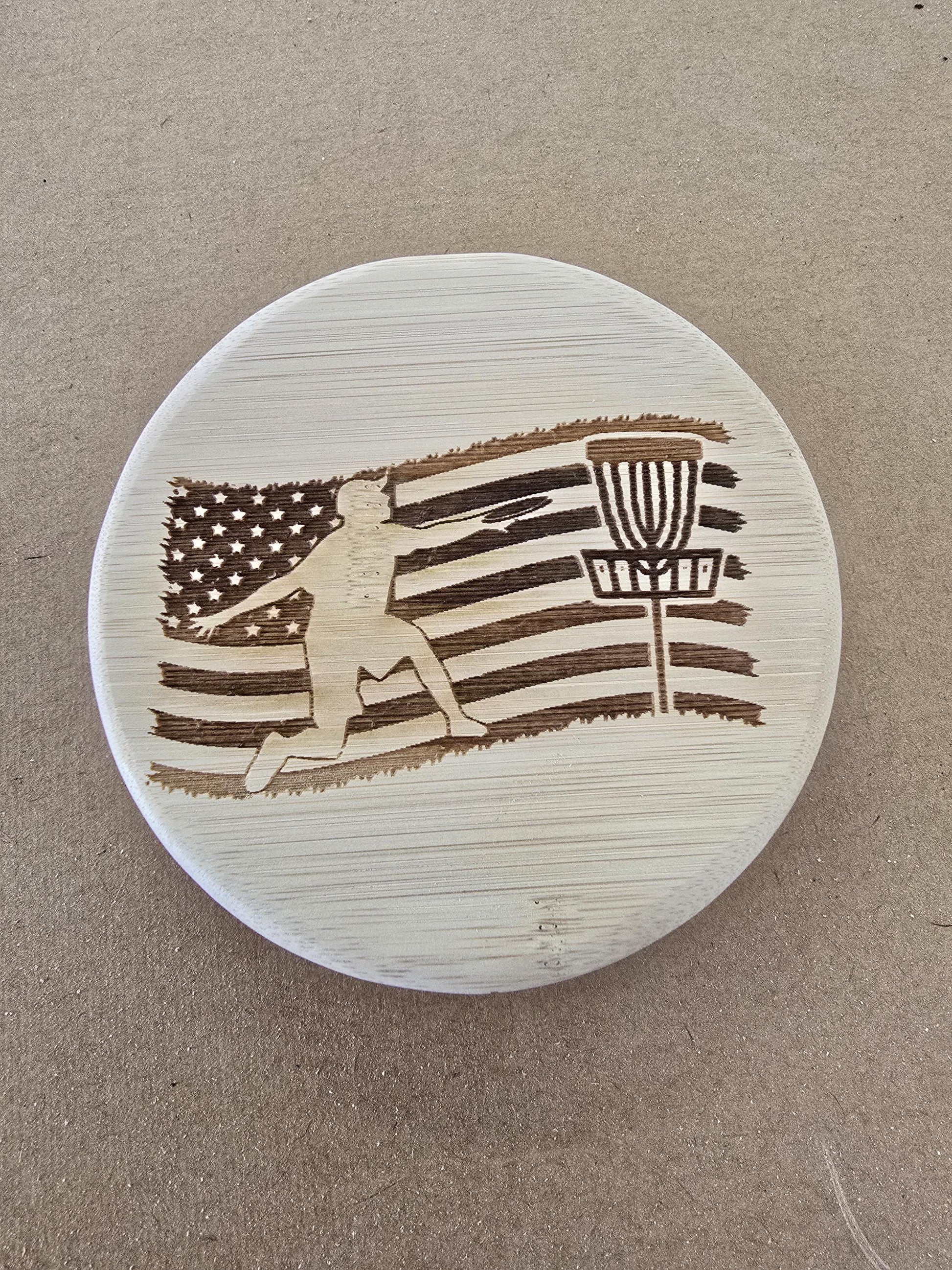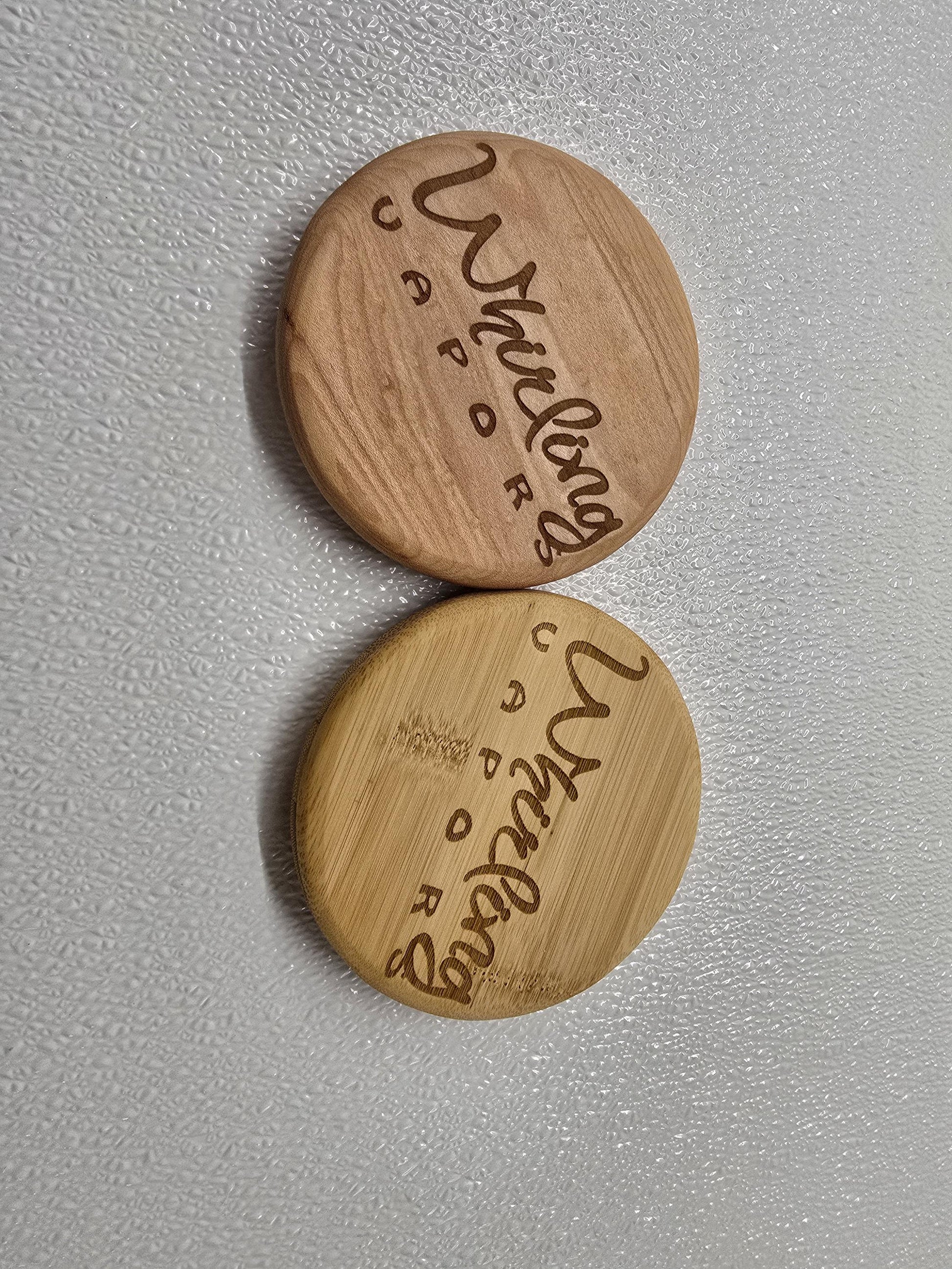 These are custom made in your choice of material, 5" in round 5/8" thick . Custom logos, characters, sayings, businesses, and more can be lazered on the front.