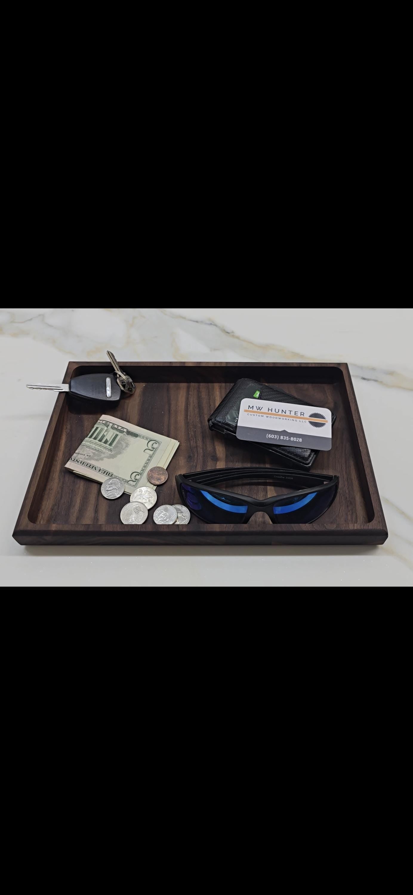 This rectangle shaped tray /catch all, made out of solid black walnut.