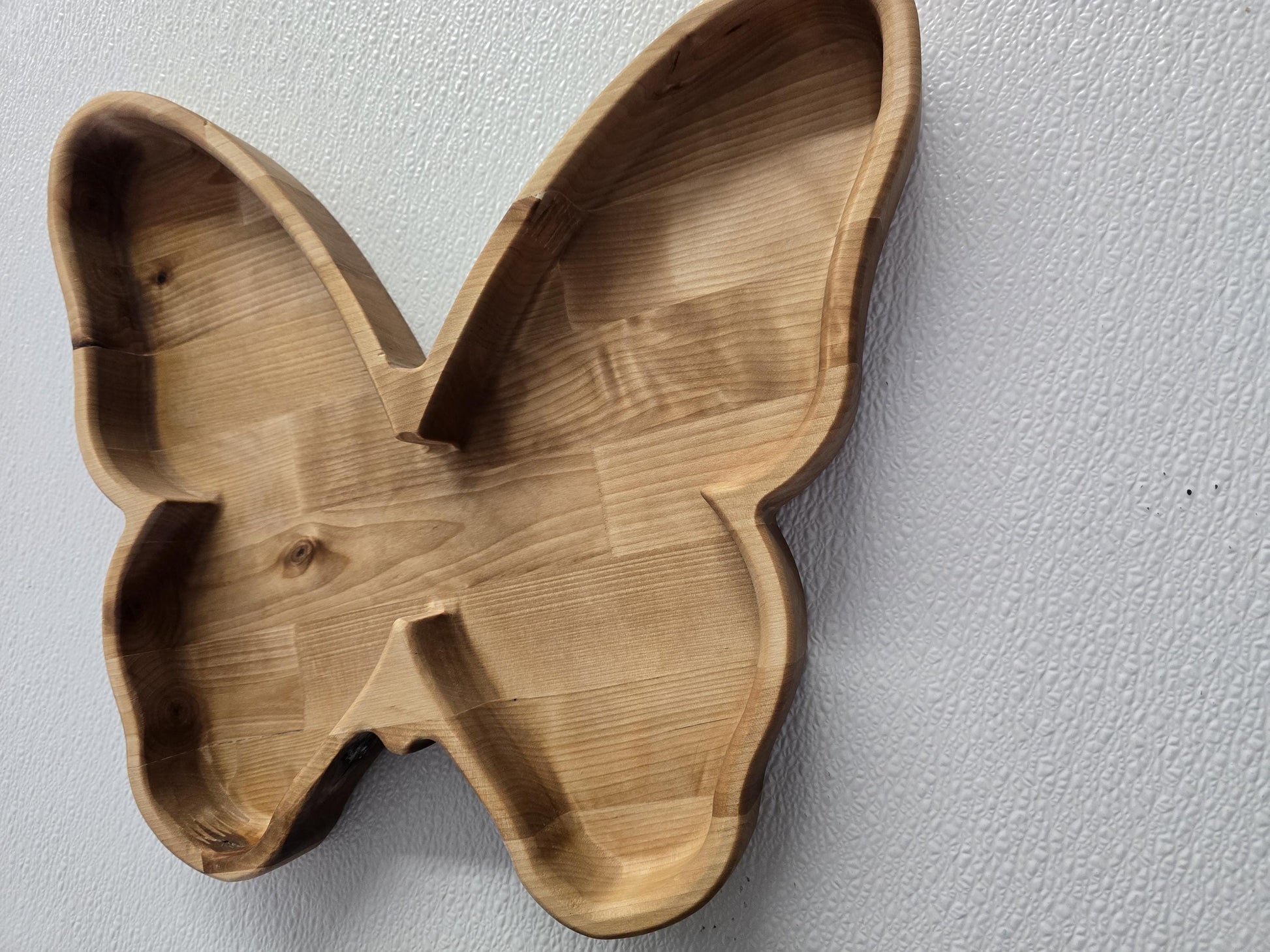 These hardwood snack dishes shaped like a Butterfly are great for any occasion. Snacks, treats, catch-all, all kinds of uses. There are finished can I butcher block conditioner that is food safe for all of your snacks . These are solid hardwood. Sold individually 13.75" Tall 15" Wide 1.5" Thick More varieties available to order see website.